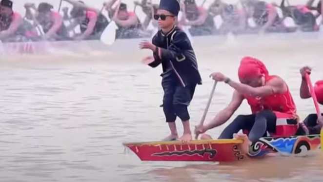 Tarian bocah di pacu Jalur Kuantan Singingi (Kuansing), Riau, tetiba mendunia dalam beberapa pekan terakhir. Salah satu bocah yang mendapat aura farming adalah Rayyan Arkan Dhika.