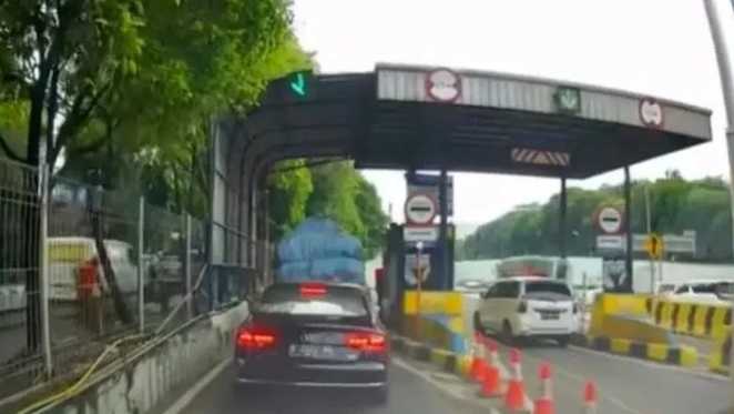 Saat gerbang tol terbuka, Audi itu langsung mengekor mobil pikap itu untuk masuk jalan tol. Pengemudi Audi terlihat jelas tidak melakukan pembayaran atau tap in di gerbang tol.