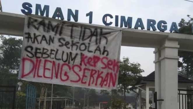 Aksi mogok dilakukan ratusan siswa SMAN 1 Cimarga Lebak ini pada Senin, 13 Oktober 2025. Selain mogok sekolah, para siswa itu juga menggelar spanduk bertuliskan "Kami tidak akan sekolah sebelum kepsek dilengserkan".