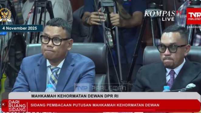 Putusan ini dibacakan Wakil Ketua MKD DPR, Adang Daradjatun di Gedung DPR, Jakarta, Rabu, 5 November 2025. Lima anggota DPR yang terlapor yakni Adies Kadir, Nafa Urbach, Surya Utama, Eko Hendro Purnomo, dan Ahmad Sahroni hadir dalam pembacaan putusan.