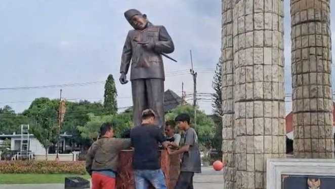 Kondisi ini viral di media sosial dan menjadi sorotan warga. Sementara patung Wapres ke-1 RI, Moh Hatta, yang ada di sampingnya baik-baik saja.