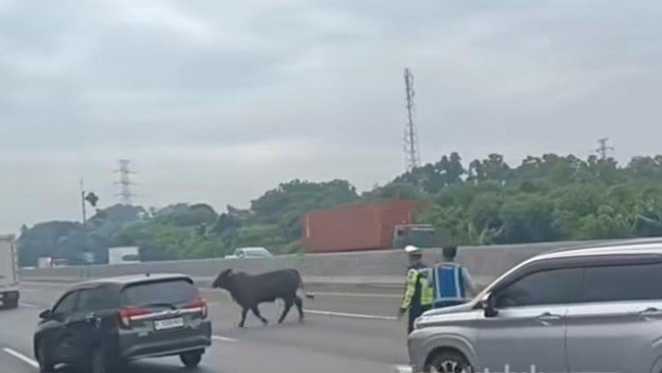 Newscast.id - Sebuah video yang memperlihatkan dua sapi lepas di Tol Cikampek viral di media sosial. Dua sapi itu berkeliaran di jalan hingga membuat arus lalu lintas macet.