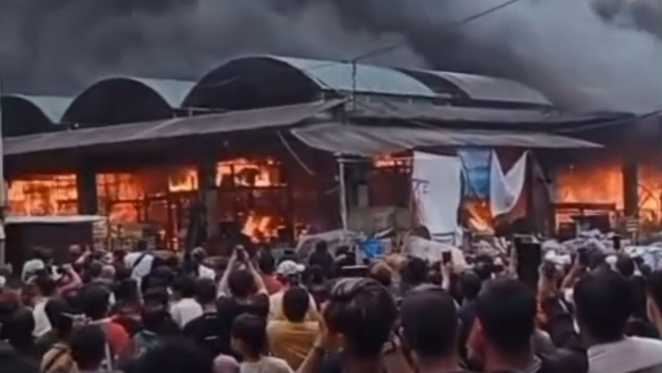 Newscast.id - Pasar Induk Kramat Jati, Jakarta Timur, kebakaran pada Senin, 15 Desember 2025. Terdengar ada ledakan saat kebakaran terjadi.