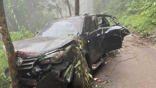 "Akibatnya, mobil keluar jalur dan terjun ke dalam jurang sedalam sekitar 100 meter," kata Chelvin.