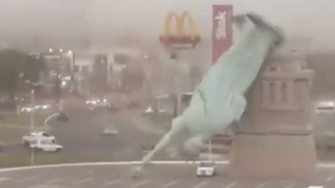 Detik-detik Patung Liberty roboh ini viral di media sosial. Dalam video itu terlihat, patung tersebut terombang-ambing saat diterjang badai. Patung itu akhirnya roboh dan hancur. Kepalanya sampai terpisah dari badannnya.