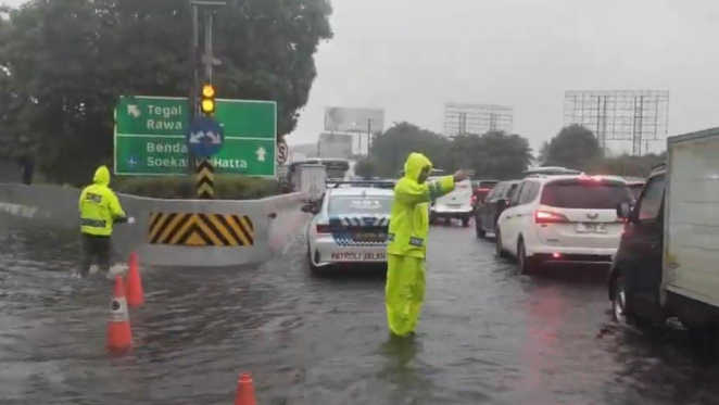 Newscast.id - Banjir masih menggenangi ruas Tol Sedyatmo arah Bandara Soekarno-Hatta. Pihak pengelola mengungkapkan penyebab banjir yang masih terjadi hingga Selasa, 13 Januari 2026 pagi ini.