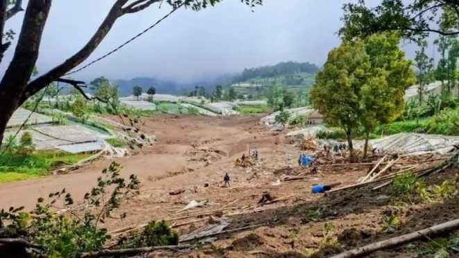 "Peristiwa longsor dipicu hujan dengan intensitas tinggi dan menyebabkan material longsoran menimbun permukiman warga dan menyebabkan korban jiwa serta warga terdampak," kata Abdul Muhari dalam keterangan tertulisnya.