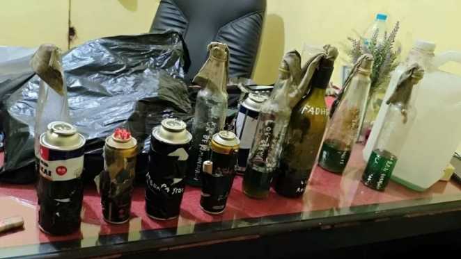 - 6 botol bom molotov berisi bahan bakar dan sumbu kain