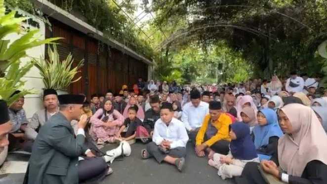 Dalam video yang beredar, terlihat warga menutupi jalanan di depan rumah Jokowi. Mereka duduk bersila sambil melantunkan bacaan Al-Qur'an.