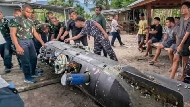 Newscast.id - Warga di Gili Trawangan, Lombok Utara, Nusa Tenggara Barat dihebohkan dengan penemuan benda mirip torpedo apal selam. Bnda itu kini diamankan di Pangkalan TNI AL Mataram.