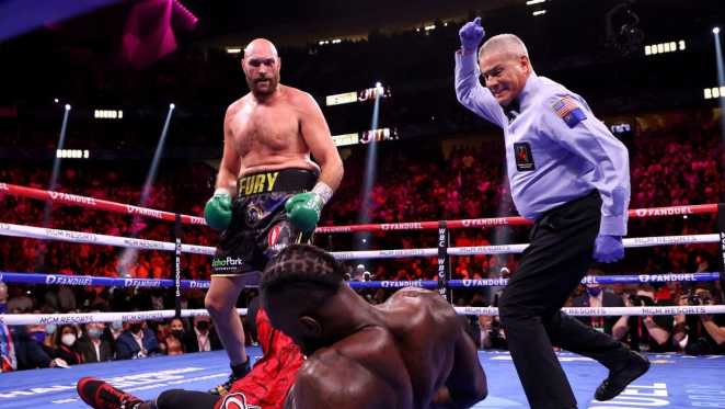 Wasit akhirnya memutuskan Fury menang KO.