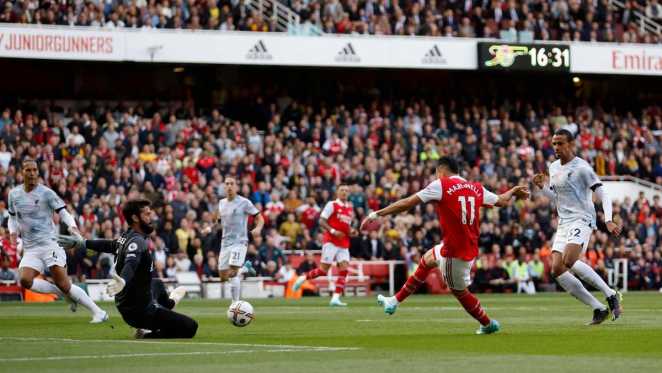 Pertandingan belum genap satu menit, Arsenal membuat kejutan dengan mencetak gol cepat. Gabriel Martinelli sukses menjebol gawang Alisson Becker usai menerima umpan dari Martin Odegaard.